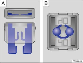 Fig. 232 Blown fuse: A: flat blade fuse, B: JCASE® fuse