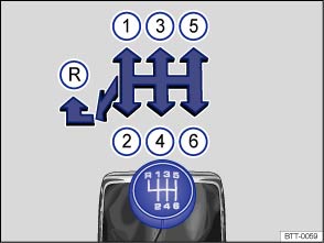 Fig. 135 Gear shift pattern of a 6-speed manual gearbox