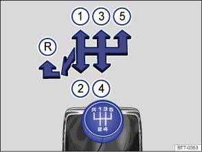 Fig. 134 Gear shift pattern of a 5-speed manual gearbox
